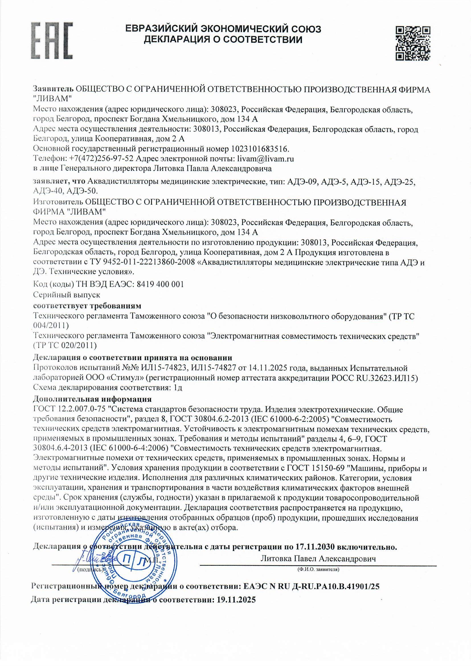 2025 © Дистиллятор, бидистиллятор ООО ПФ «Ливам»